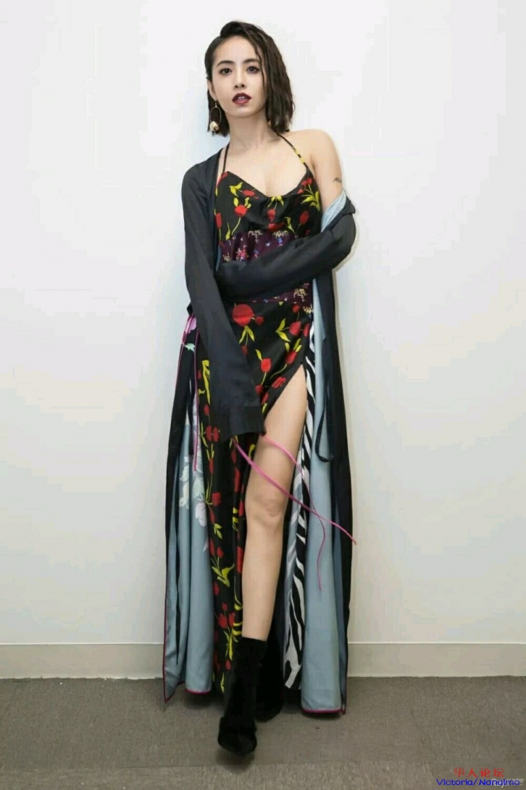 如果你想突破自己的小性感,那么吊带裙加上高开衩的设计,诱惑力直线上升,能够驾驭的你千万不要错过。Jolin一袭高级的黑底碎花吊带裙加上高开叉的设计搭配一双短靴,就显得时髦又性感。
