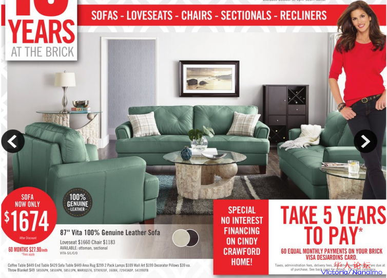 ' E3 G) h% H+ t5 j餐桌399起,茶几以及落地等199起。高档100真皮沙发如今是最高折扣,全国220家The Brick零售商,我们的沙发销售量是最高的,高档的品质,亲民的价位,真正的物美价廉,尽在The Brick on Douglas Street!!!9 {5 K6 j8 v$ g* j