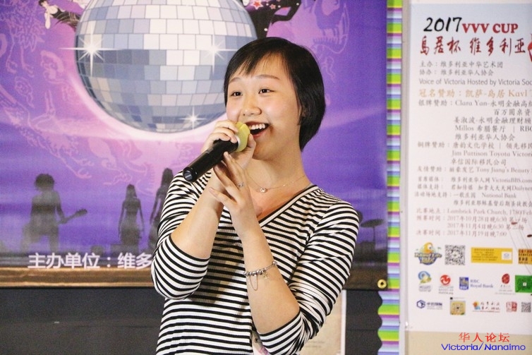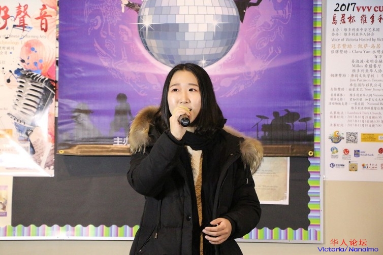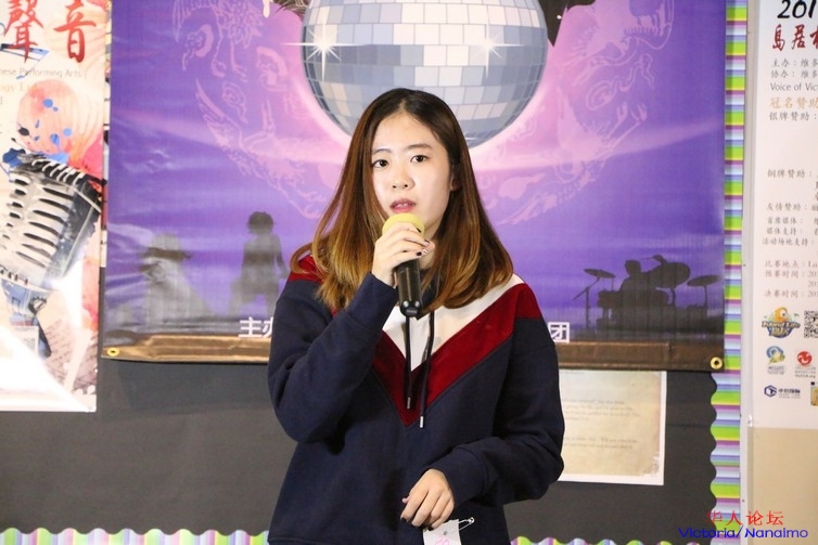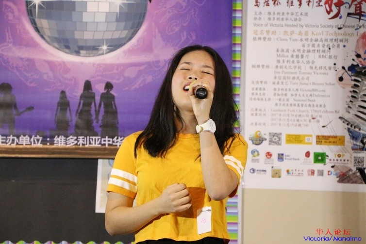 来自 Mt. Douglas 高中的 Olivia 演唱的是张碧晨翻唱版本的《她说》,她的嗓音安静优美,真假声转换的也十分自然。同样,台下的支持者也是一大群。