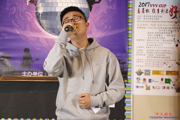 这位来自维大并自称“维多利亚好房东”的选手 Kai 演唱的是薛之谦的《方圆几里》,他的演唱十分的专注,台下的亲友团也是非常的热情。