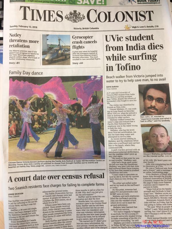 维多利亚中华舞蹈团在2月12日家庭节的演出,都上了当天报纸的头条。