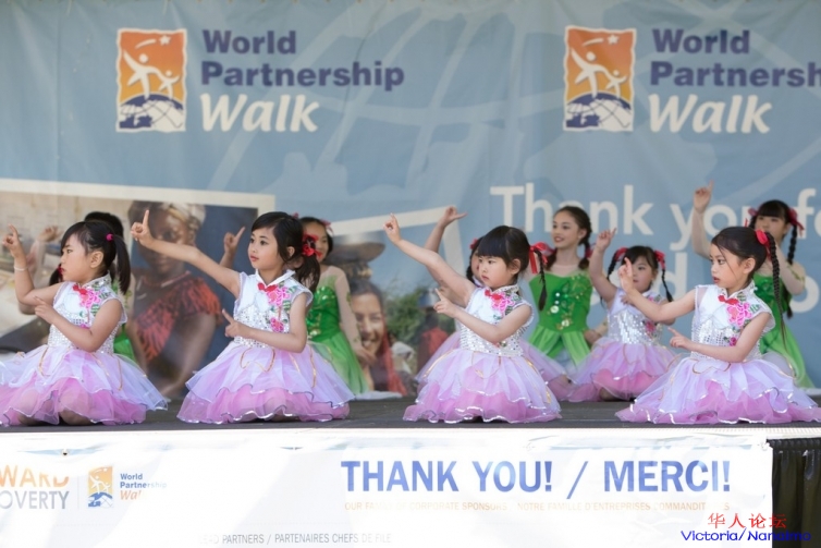 0 M: o% R! v+ q a/ R; o3 Q5 e5 A活动:庆祝加拿大亚洲文化月(五月)民族歌舞会, 暨世界联合行走(为世界贫困募捐行走)
