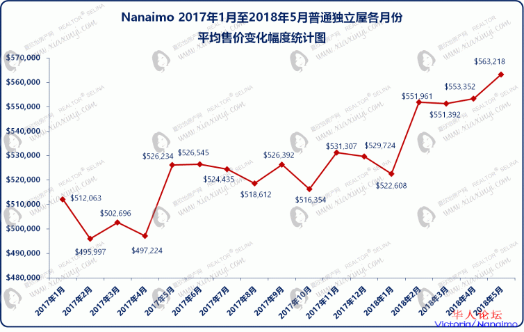 图1:Nanaimo 2017年1月至2018年5月普通独立屋