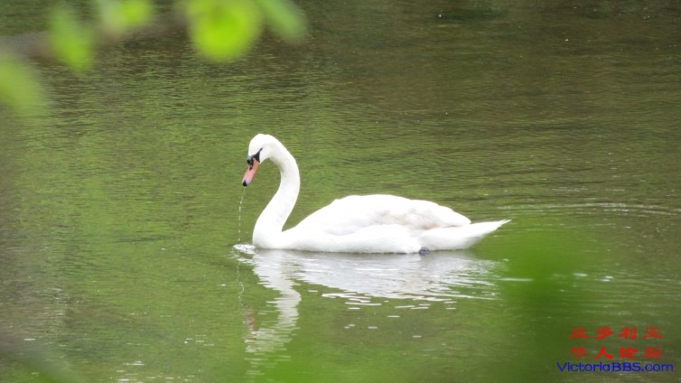 今天上午看完大夫后顺便到 Colquitz River Park 走了几步路。见到这只大天鹅独自在 creek 里吃午饭。我们的相机是佳能傻瓜,人有点饿且技术也较差。但天鹅是真的很美,举止非常优雅。