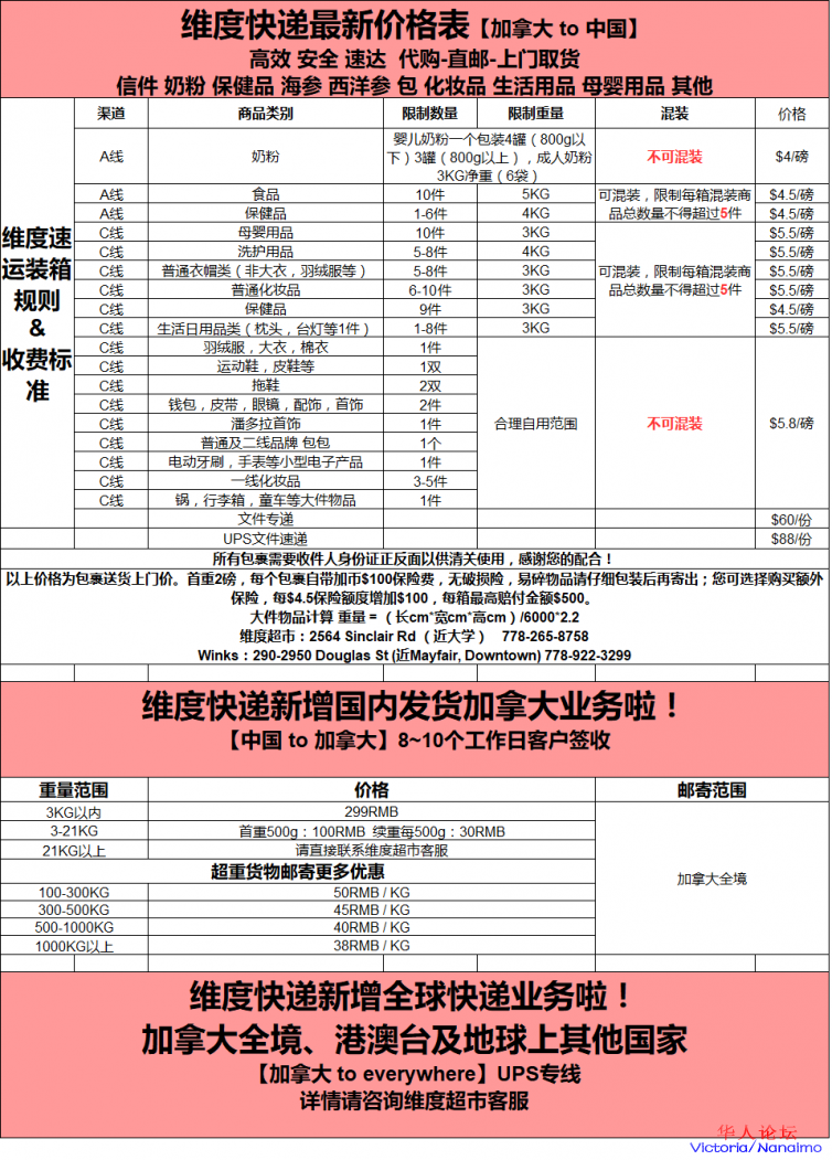 维度国际速运 - 快递,物流 - 两磅起,无首磅