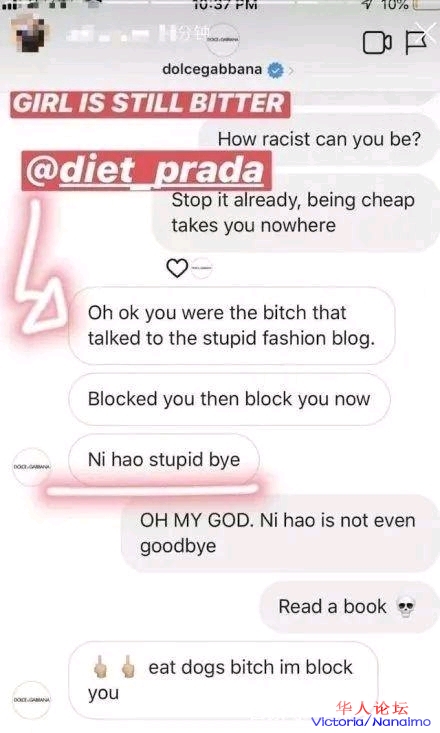 前几天网友爆出知名品牌Dolce&Gabbana(杜嘉班纳)的设计师兼创始人Stefano Gabbana在ins上公然发表辱华言论。与此同时,有网友将这件事发给杜嘉班纳的官微,竟然也得到了明显侮辱性质的回应:Nihao stupid bye !现在我们来看看杜嘉班纳的作死之旅。