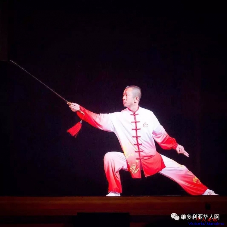 太极武术:男儿当自强来自邓肯的陈瑜太极功夫表演团-加拿大队为我们带来了太极拳、太极剑和大刀表演。6 t# R# d# l( \0 W