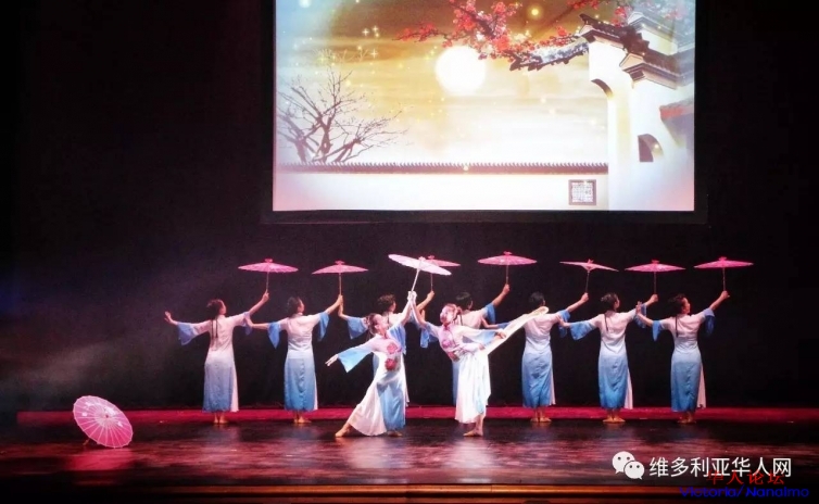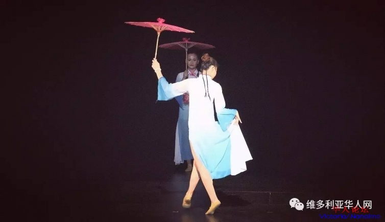舞蹈:小城雨巷由维多利亚中华文化艺术团表演的《小城雨巷》十分清新淡雅。大幕拉开,只见一个手持油纸伞,身穿蓝白长裙的女子向她的同伴走去。9 h% z& p* g2 F3 \. W6 x