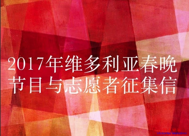 2017维多利亚春晚组委会愿与您一起为我们的华人社区和本地其他族裔的观众朋友们奉献一台精彩纷呈的晚会。不要让我们错过您的精彩,来和我们一起闪亮登场吧!