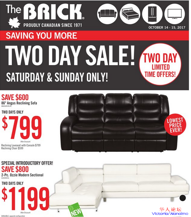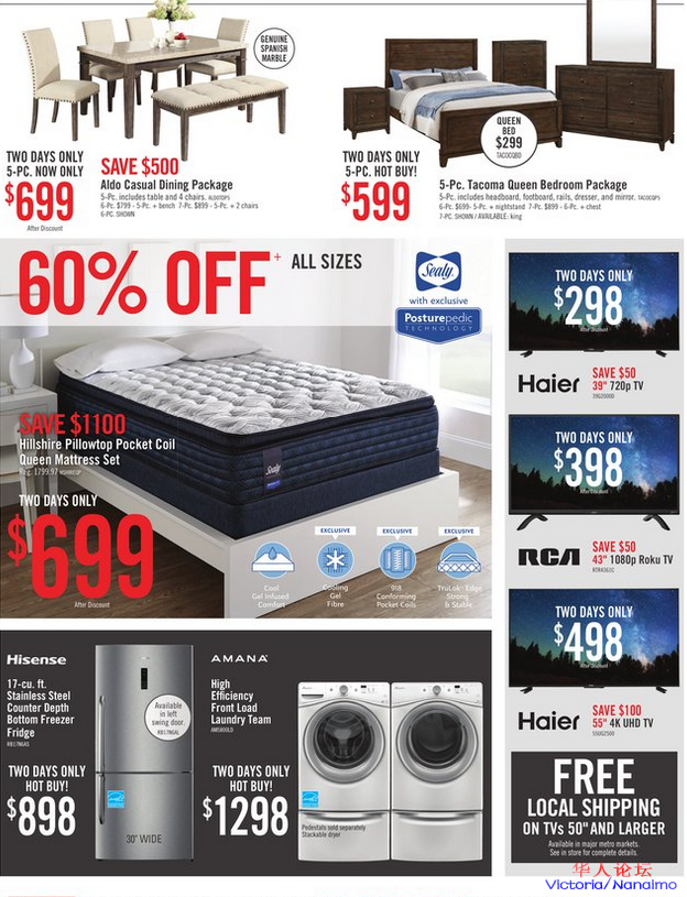 服务本地居民45年之久,本周末几十种商品打折,床头床架$299起,海尔海信冰箱以及55寸4KTV仅要$498,美的洗碗机,这些华人品牌在The Brick皆有折扣。