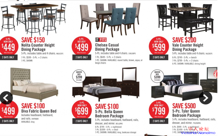 真皮沙发$899起,餐桌五件套$449起,高档橡木餐桌五件套$599,纯白L型沙发仅$1199,奢华高档床垫原价$1799,现在只要$699,高科技产品胶棉,恒温系统保持您安稳睡眠,全身心投入到生活中去。