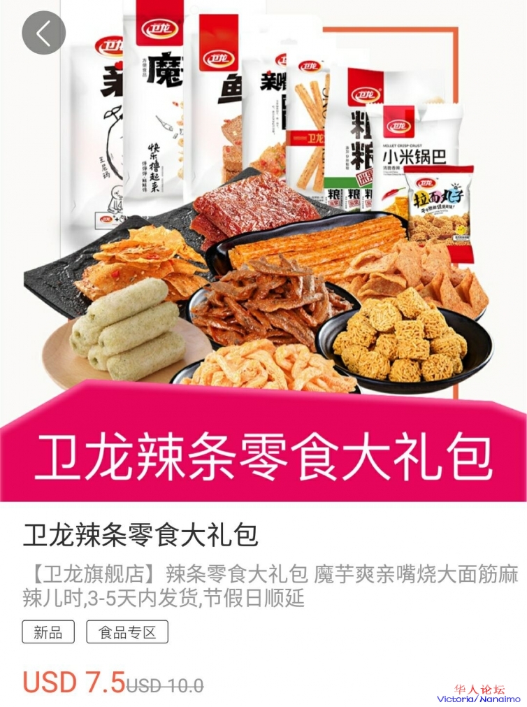 现在,快帆全新升级上线海外淘中国功能,为海外华人提供更便利的生活服务,漂洋过海将卫龙辣条等中国本土零食美味送到到你眼前。你只需要下单留下地址,就可以坐等国货到家了。