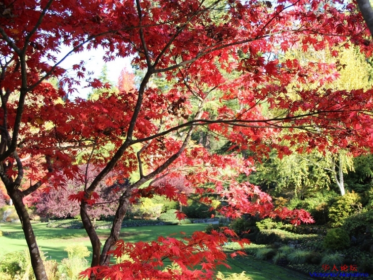 » 秋色中的片片红叶,片片红叶晕染的布查花园