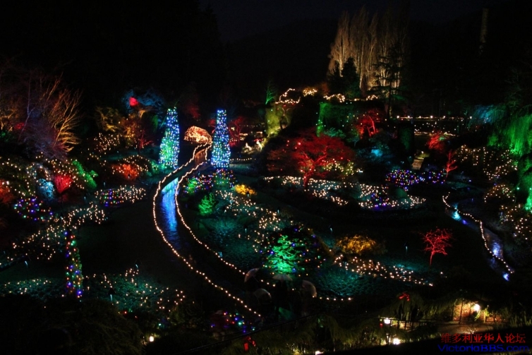 雨中,夜色,圣诞里的布查花园