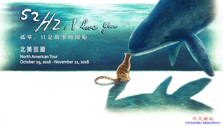 " s6 C' E% I" Y% H% |* b这只在北太平洋被发现的鲸鱼,牠独一无二的歌声远远超出一般鲸鱼声波的频率,而得不到同类的共鸣。二十多年来,「52赫兹」只身环游大海,唱着只有自己听得见的歌,成为世界上最寂寞的一只鲸鱼。' F' R; v( e/ H3 u5 b. ~