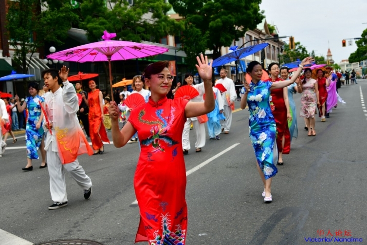 95个团体参与了这次游行,今年的游行,从参与人数,队形阵容等,都比往年更热烈,宏大,大家的参与热情非常高。为凝聚华人社区,展现华人风采,维多利亚华人协会组织了一支60多人的华人游行队伍代表华人社区参与了此次盛大的游行。这个游行方阵由旗袍队,陈瑜太极维多利亚和邓肯队,维多利亚中华艺术团的成员组成。