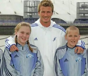 2005年,贝克汉姆在伦敦办了个足球学院,他与许多孩子合了影。其中,小贝右边这圆滚滚的小孩,叫哈里·凯恩,11岁。贝克汉姆是他的偶像。